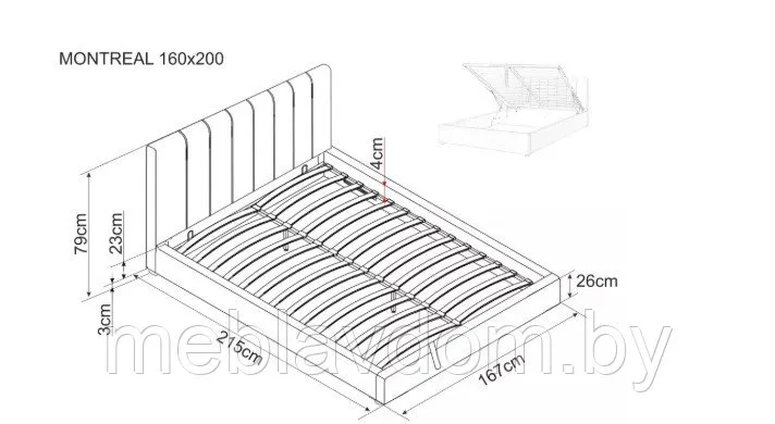 Размер спального места кровати: 2000х1600 мм. (ШхГ).